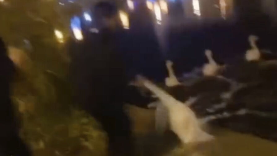 Судя по видео, мальчик вытягивает лебедя за шею из воды, пока остальные снимают и смеются.