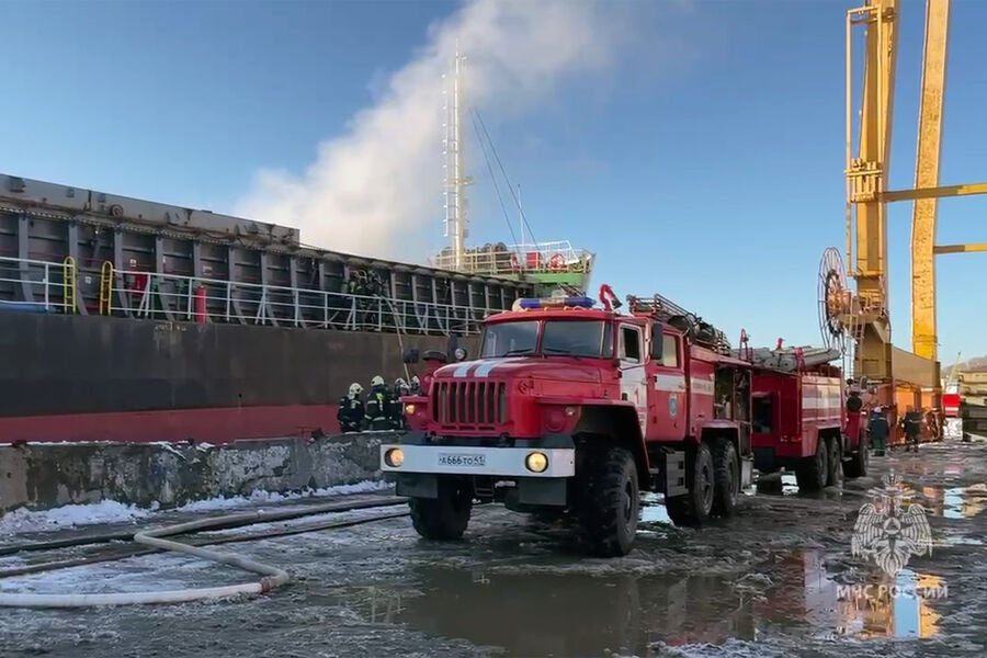 «Пожар на судне в морском торговом порту ликвидирован. Площадь возгорания составила 100 кв. м.» — говорится в сообщении.