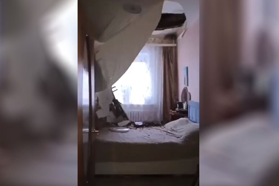 На опубликованных местными пабликами видео показаны последствия обрушения из квартиры этажом ниже, в частности обвалившаяся на кровать часть потолка.