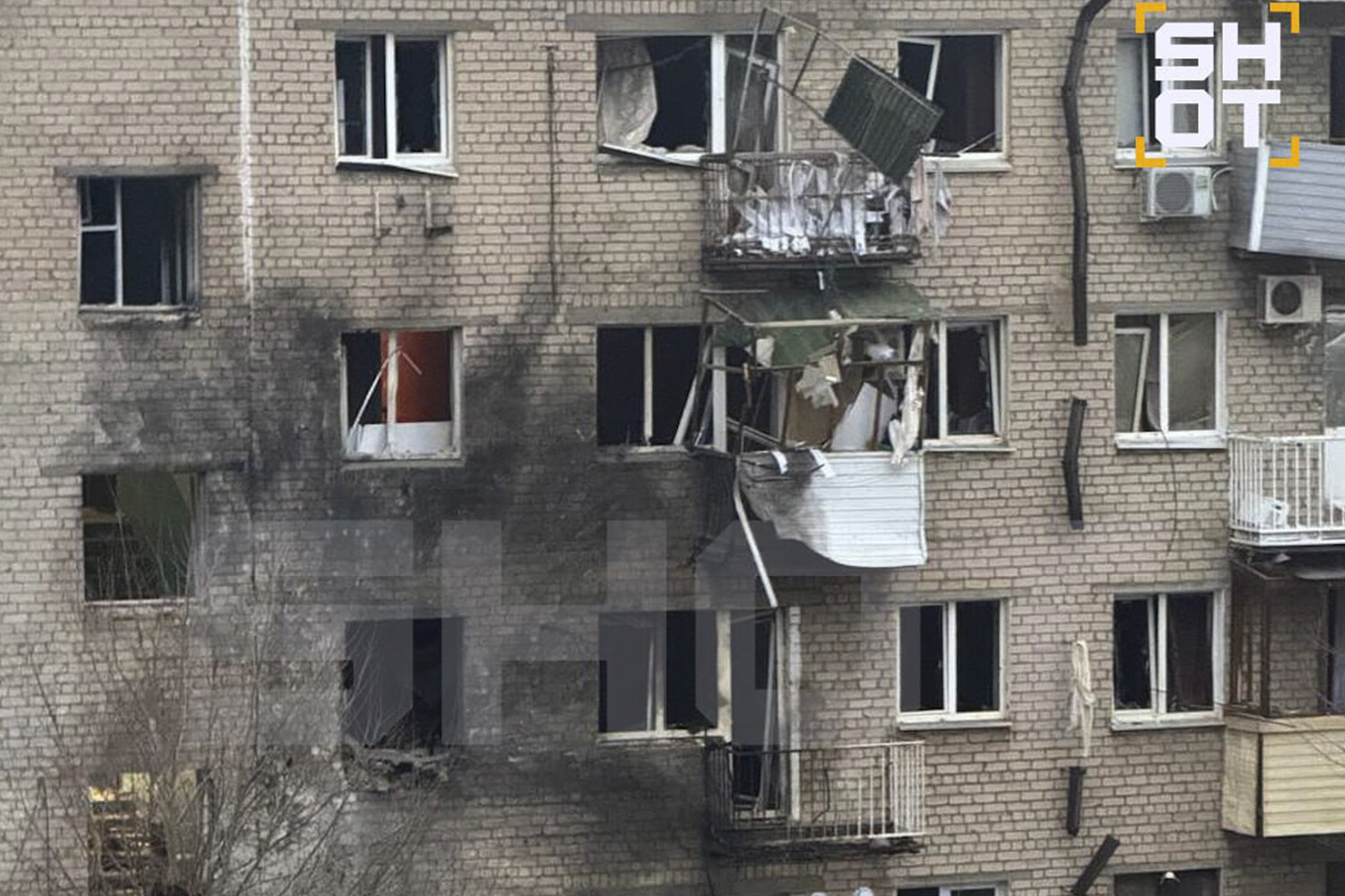 На кадрах видно, как у нескольких соседних домов разбиты окна.