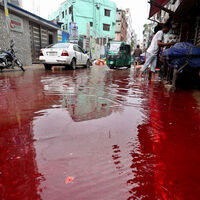 Такое необычное природное явление объясняется высоким содержанием оксида железа в почве. Местные жители называют его «кровавым дождем».