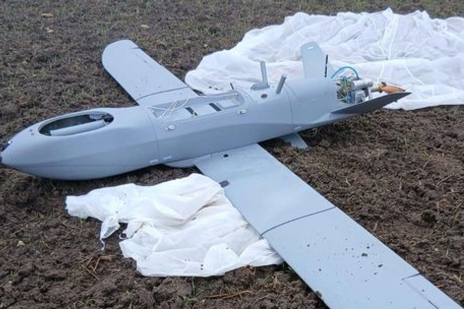Дрон самолетного типа был найден в поле. Тип и модель аппарата пока не определены. При этом рассматривается версия о его возможном российском происхождении.