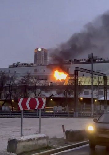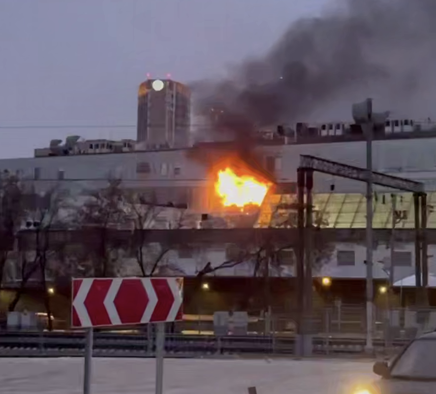 Площадь пожара в бизнес-центре на юге Москвы увеличилась