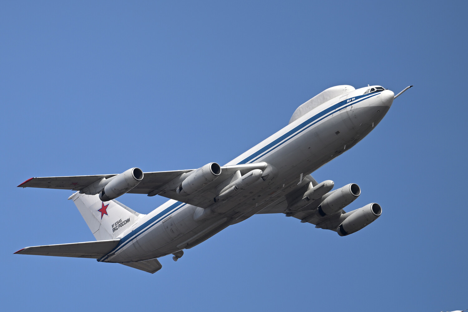 Редкое фото российского Ил-86, известного также под названием «самолетом Судного дня», опубликовал канал Fighterbomber в Telegram-канале.