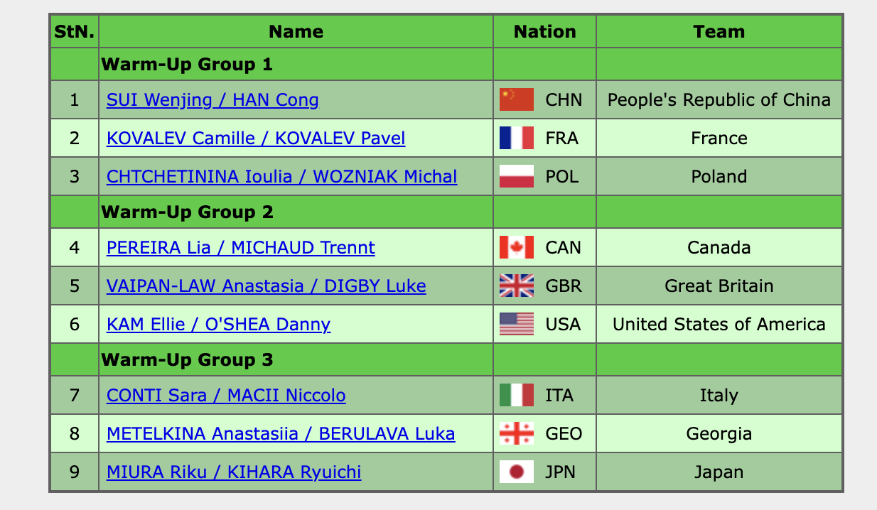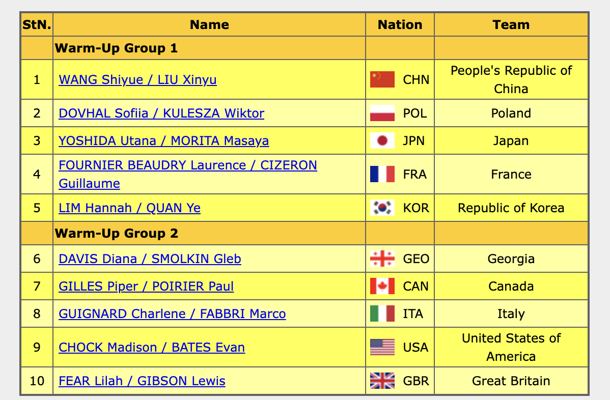 Открывают прокаты Ван Шиюэ и Лю Синьюй из сборной Китая!