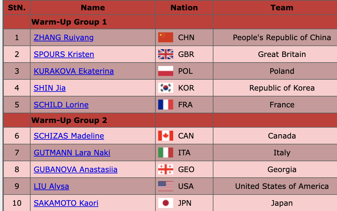 На разминку вышли женщины-одиночницы! Порядок выступления в короткой программе: