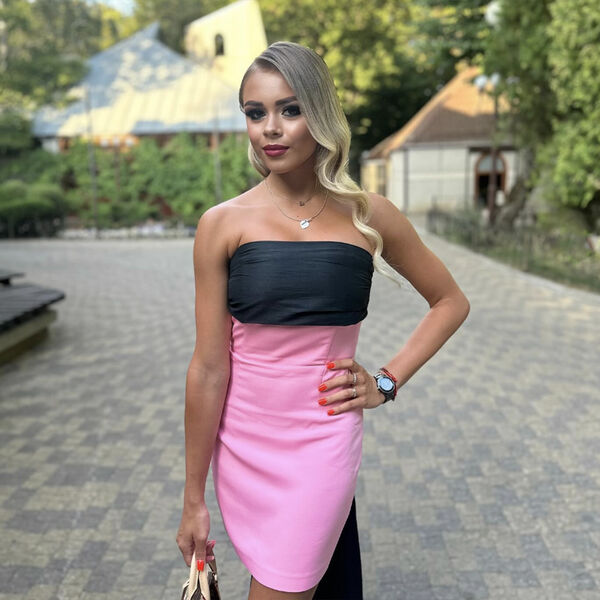 Спортсменка предстала перед подписчиками в черно-розовом платье с обнаженными плечами.