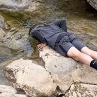 На снимке муж российской теннисистки, британский миллионер Александр Гилкс, освежается водой из горного ключа.