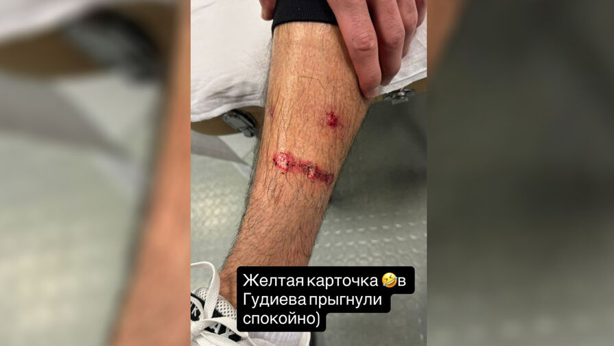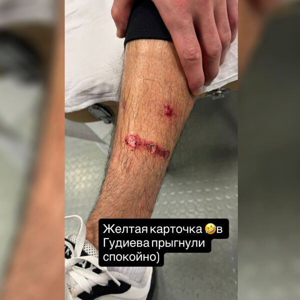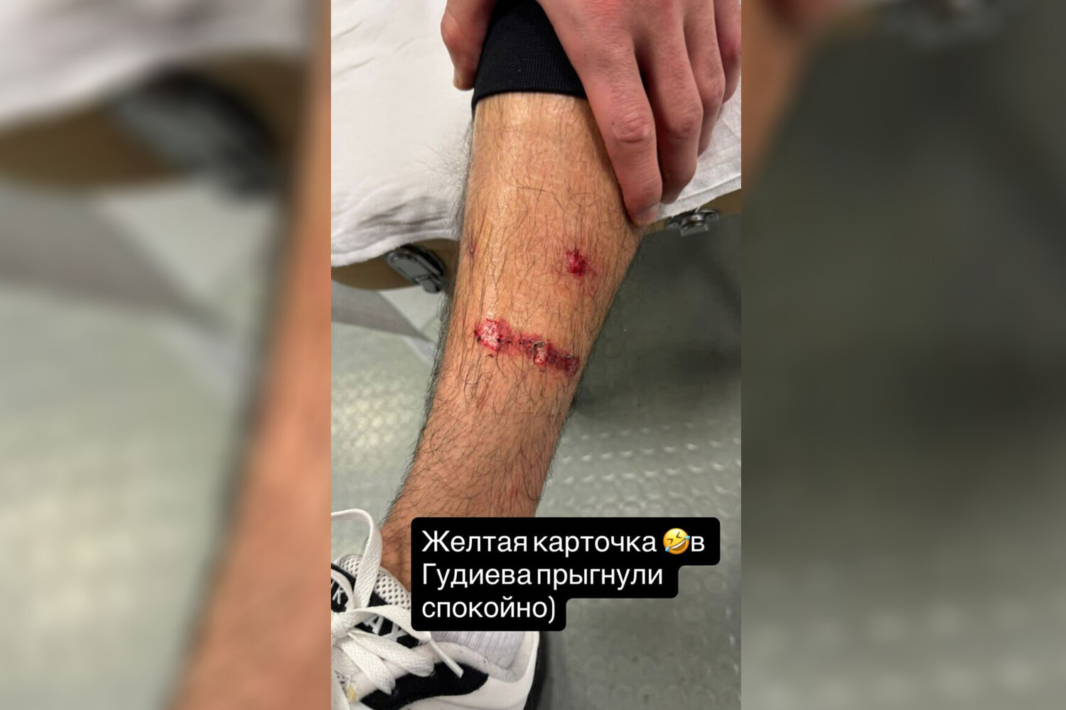 «Желтая карточка. В Гудиева прыгнули спокойно», — написал Дзюба, выложив фото с ногой Гудиева.