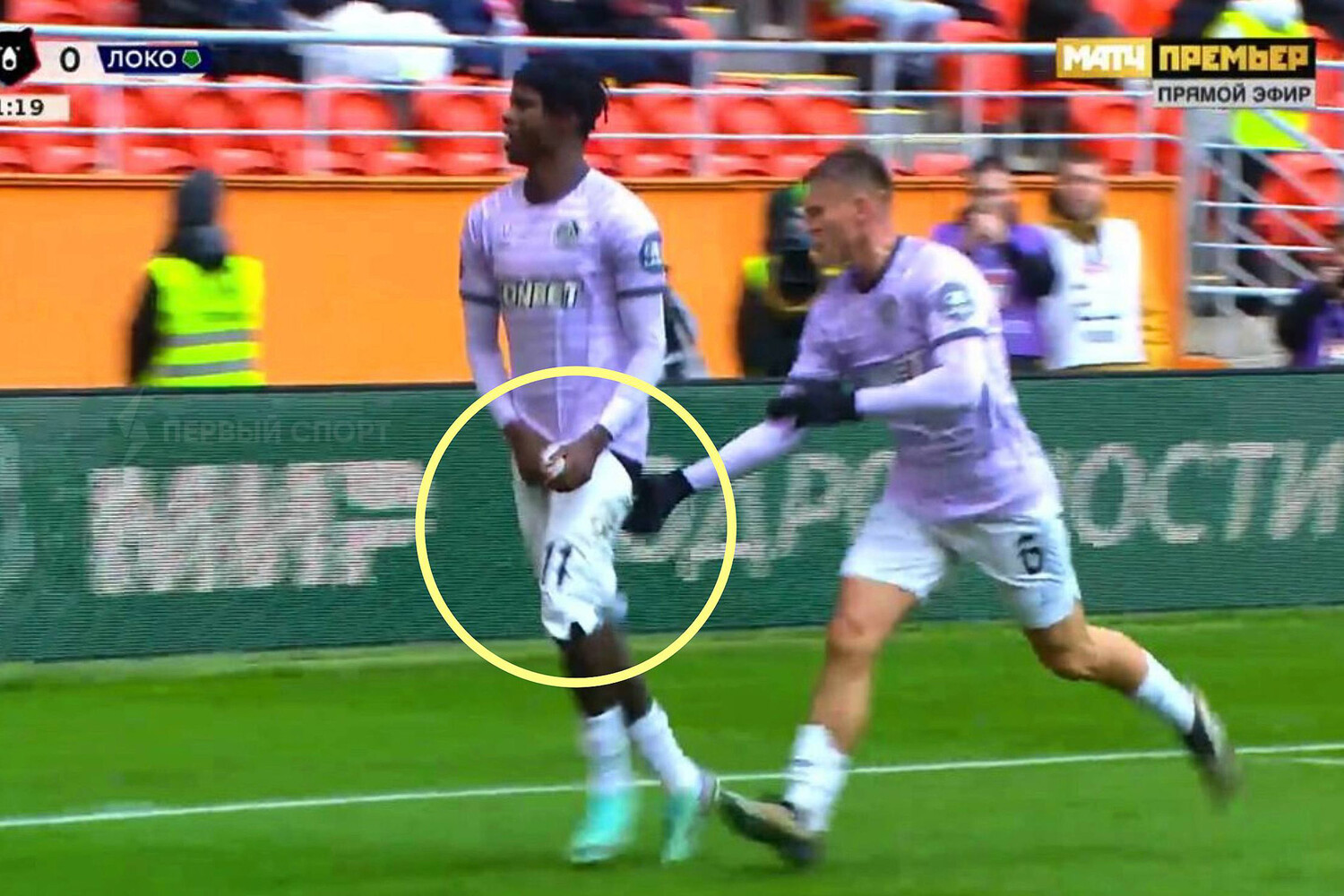 У форварда спустились шорты во время празднования, после чего нападающий сборной Кабо-Верде начал трогать собственные гениталии. В итоге сзади к нему подбежал еще один игрок «Акрона» Максим Кузьмин, который тут же подтянул спущенные шорты одноклубнику.