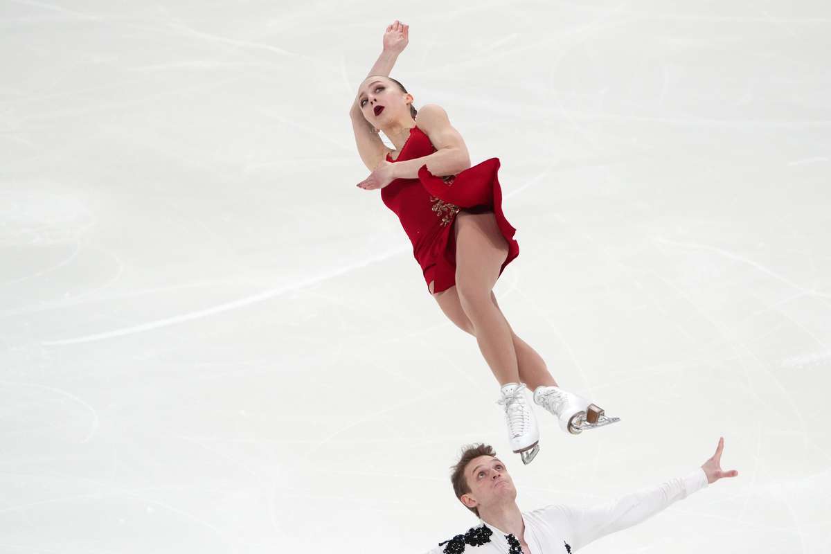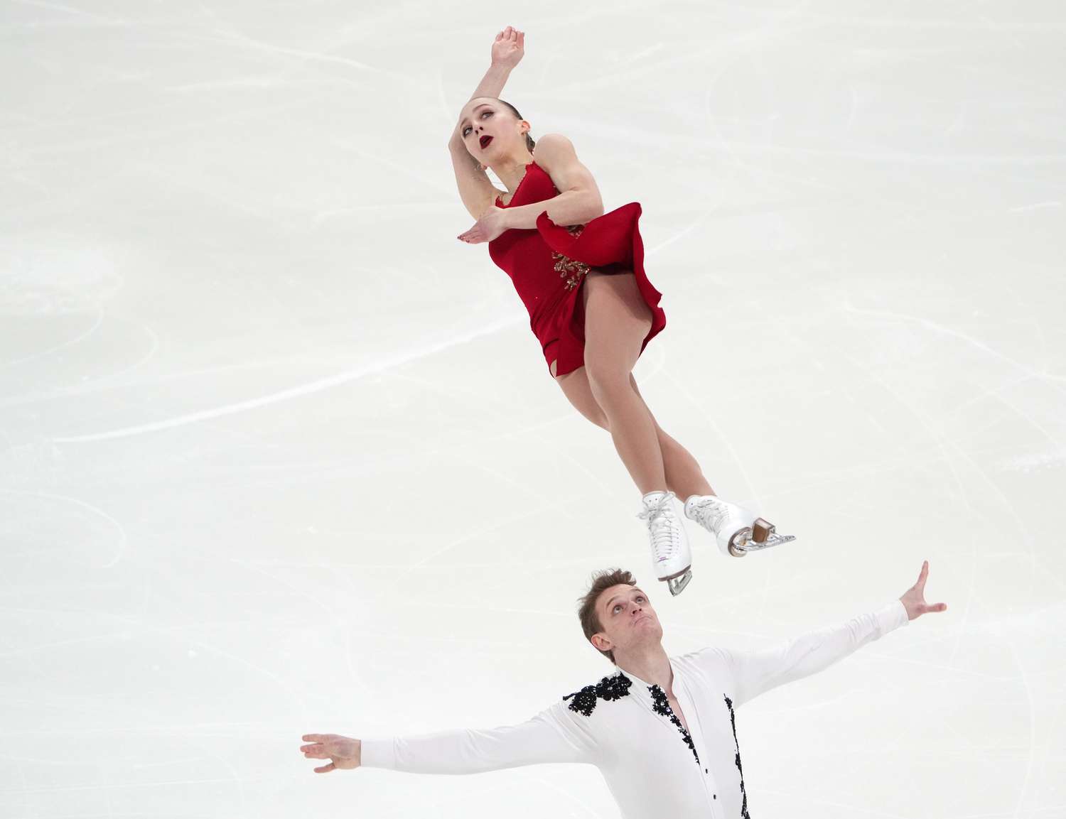 Спортсмены исполнили четверной выброс в произвольной программе и получили за нее 141,92 балла, набрав в сумме 215,34 балла.