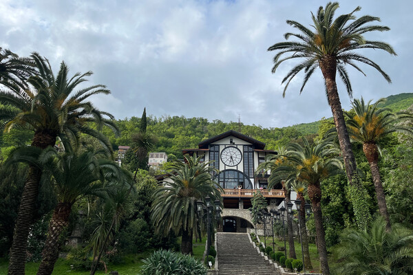 Если пойти от парка, заросшего бамбуком, акацией, пальмами — в общей сложности здесь высажено более 800 видов растений, — к колоннаде, в сторону Новой Гагры, то путь рано или поздно пойдет вдоль рядов санаториев и домов отдыха — восстановленных, выстроенных заново, строящихся. Иные поражают помпезностью сталинского ампира — сразу понимаешь, как отдыхали советские чиновники.