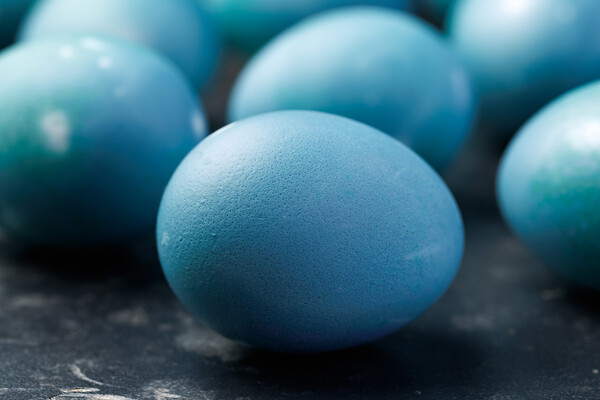 Синий — краснокочанная капуста. Яйца получаются насыщенного синего или голубого цвета.