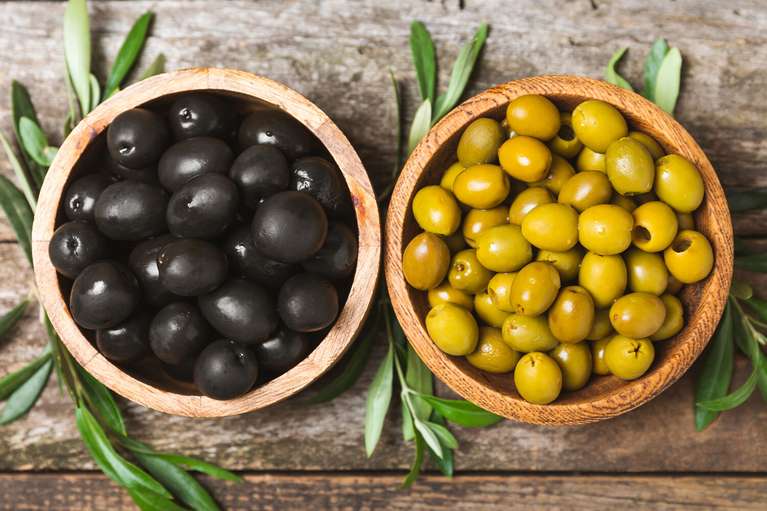 Оливки снимают с веток, пока они зеленые, плотные, с легкой горчинкой и более выраженной кислинкой. Маслины оставляют дозревать: тогда они темнеют, становятся мягкими и маслянистыми на вкус. Цвет может варьироваться от фиолетово-коричневого до почти черного — в зависимости от сорта и региона выращивания.