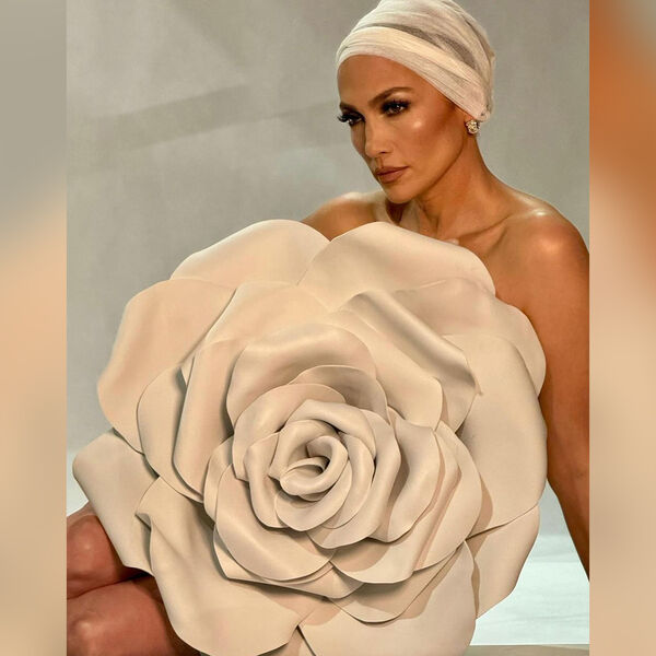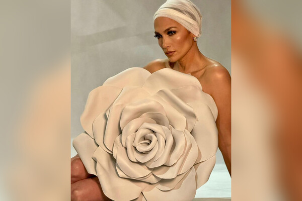 Перед камерой 54-летняя знаменитость предстала обнаженной. Дженнифер Лопес позировала фотографу, прикрывшись огромным цветком бежевого цвета. Актриса дополнила свой образ головным убором кремового цвета и массивными золотыми серьгами. Дженнифер Лопес собрала волосы под платок и сделала макияж с угольно-черными стрелками и коричнево-розовыми губами.