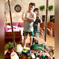 Лариса Гузеева опубликовала совместную фотографию с Гариком Харламовым, которая была сделана во время съемок фильма «Теща». Актриса предстала в кадре в пижамном костюме с принтом и темных тапочках, а юморист — в серой майке-алкоголичке и семейных трусах зеленого цвета.
