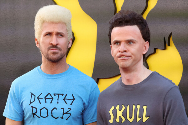 Райан Гослинг и Мики Дэй повторили образы из «Бивиса и Баттхеда». Актеры надели парики, сделали макияж и надели футболки с шортами, как у героев мультфильма.