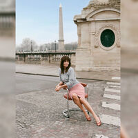 56-летняя Хелена Кристенсен позировала в облегающих юбках из тонких тканей, трикотажных топах, джинсах, жакете, платье и жилете. Образы дополняла сумка-багет, босоножки и лаконичные украшения. Съемка прошла на мосту в Париже с видом на Эйфелеву башню.