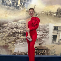 49-летняя актриса позировала в красном облегающем комбинезоне с голым плечом и объемным цветком. Образ дополнил клатч с блестками и туфли с острым мысом. Волосы ей уложили в высокий пучок и сделали вечерний макияж.