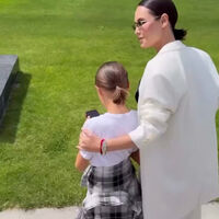 Ляйсан Утяшева показала, как с дочерью гуляет по Волгограду. Спортсменка была одета в белый жакет и брюки, а дочь — в белую футболку и черные шорты. Лицо дочери она скрыла в соцсетях.