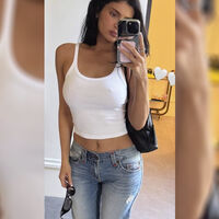 Кайли Дженнер позировала в белой укороченной майке с глубоким декольте и без нижнего белья, а также голубых джинсах со спущенной талией. Образ дополнила сумка из черной кожи и солнцезащитные очки. Однако поклонники в комментариях обратили внимание на внешность бизнесвумен без макияжа. По их мнению, она могла сделать пластику лица.