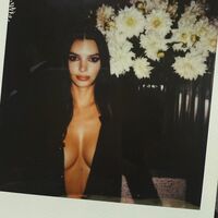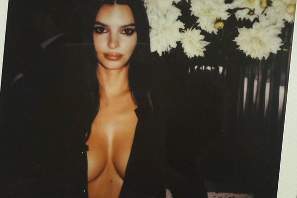 34-летняя Эмили Ратаковски предстала перед камерой в черном топе с декольте до пупка. При этом модель не стала надевать бюстгальтер. Знаменитость позировала с распущенными волосами и макияжем с блеском для губ и стрелками на фоне букета цветов.