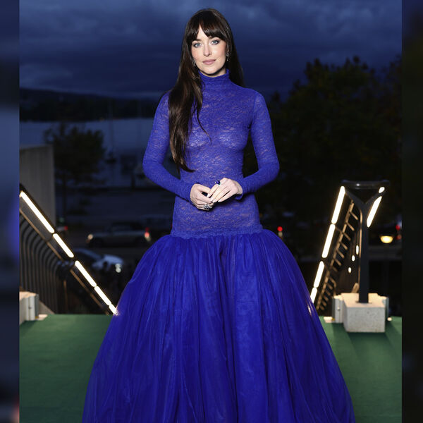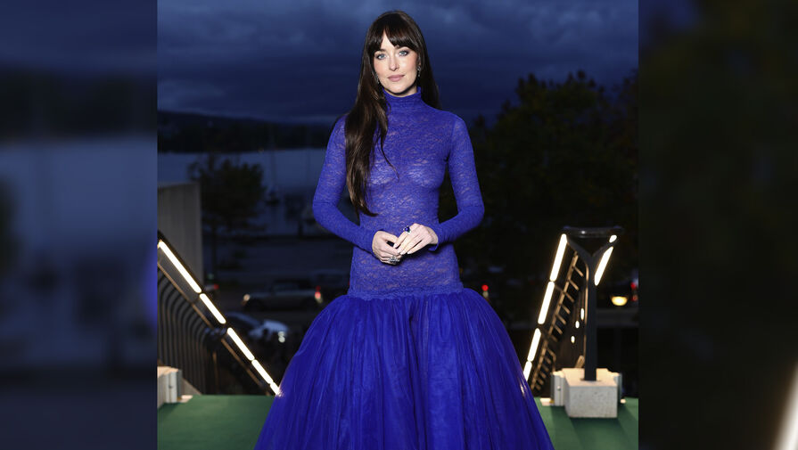 Дакота Джонсон появилась на мероприятии в ярко-синем платье с облегающим прозрачным верхом и пышной юбкой, отказавшись от бюстгальтера. Волосы ей распустили и сделали вечерний макияж с угольно-черными стрелками и подводкой.