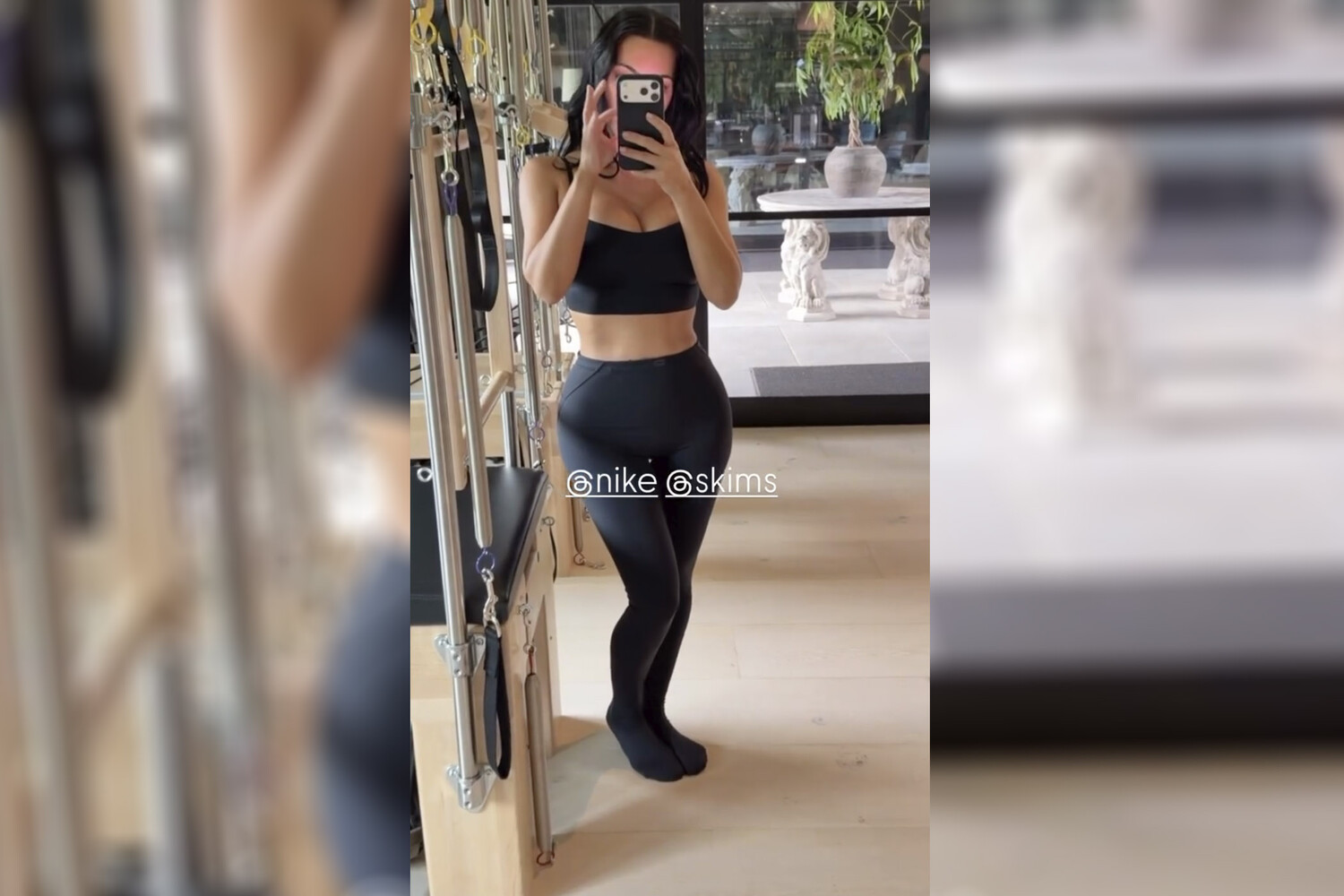 44-летняя Ким Кардашьян показала фигуру в топе с глубоким декольте и легинсах
