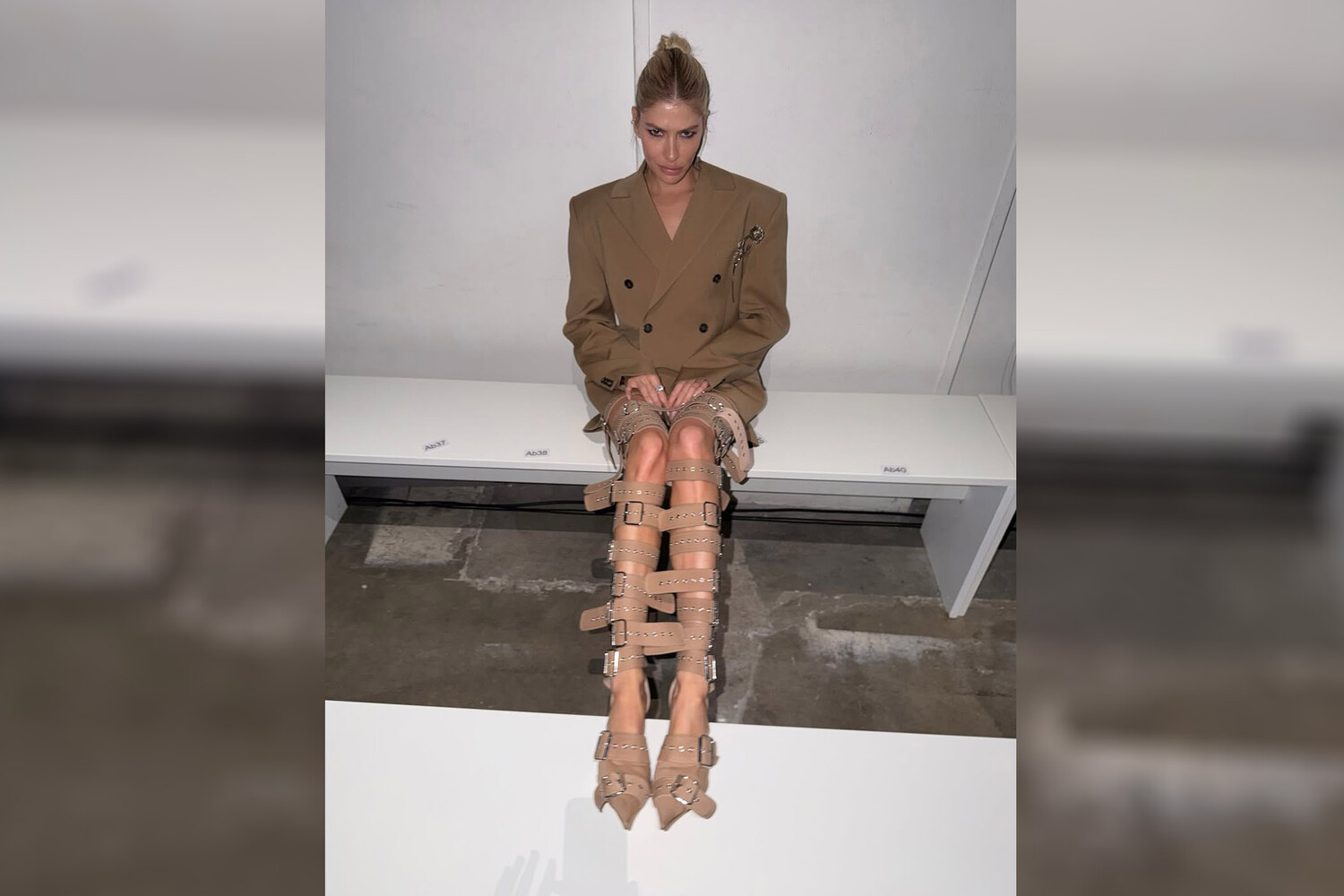 39-летняя Елена Перминова посетила показ Giuseppe Di Morabito, который прошел в рамках Недели моды в Милане. Модель выбрала для закрытого мероприятия бежевый жакет с брошью и туфли с ремнями. Манекенщице уложили волосы в небрежный пучок и сделали макияж с черной подводкой и розовой помадой.