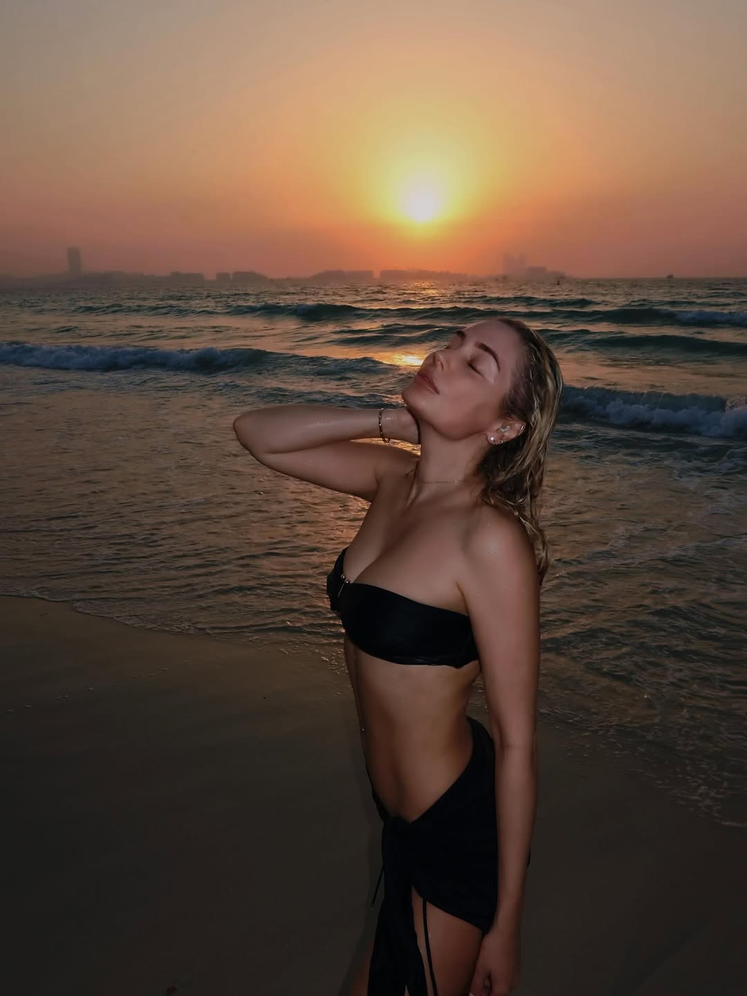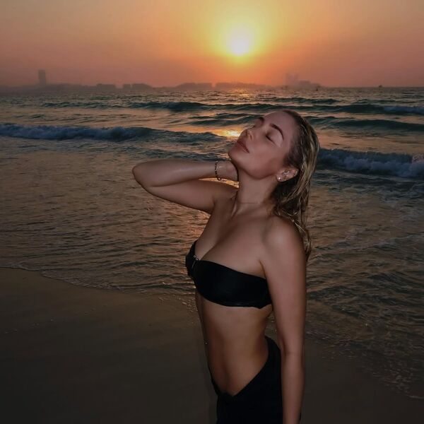 42-летняя Наталья Рудова предстала перед камерой в черном бикини, которое дополнила юбкой в тон. Актриса также надела серьги, каффы и браслет. Знаменитость была запечатлена с мокрыми распущенными волосами и без косметики. Она стояла на пляже на фоне заката.