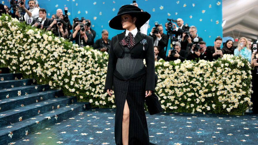 В мае Рианна объявила о том, что станет мамой в третий раз на красной дорожке Met Gala. Певица продемонстрировала округлившийся живот в сером корсете.