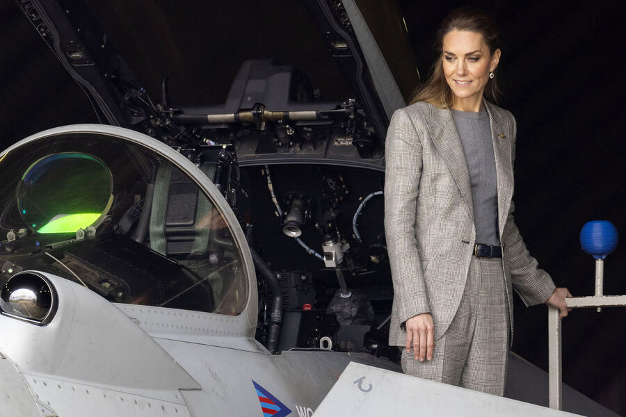 Принцесса Кейт Миддлтон в сером костюме посетила базу Королевских ВВС Великобритании