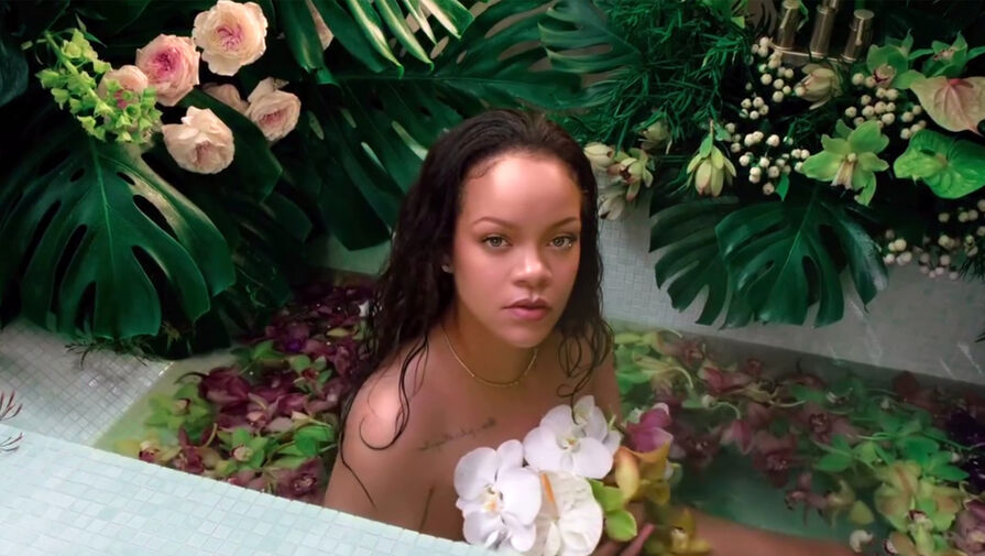 Рианна приняла участие в съемках рекламы геля для душа собственного бренда Fenty. В ролике поп-исполнительница сидела в ванне, украшенной цветами. Бизнесвумен прикрывала тело орхидеями. Певица позировала в серьгах и золотом ожерелье. Знаменитость была запечатлена с мокрыми распущенными волосами и без косметики.