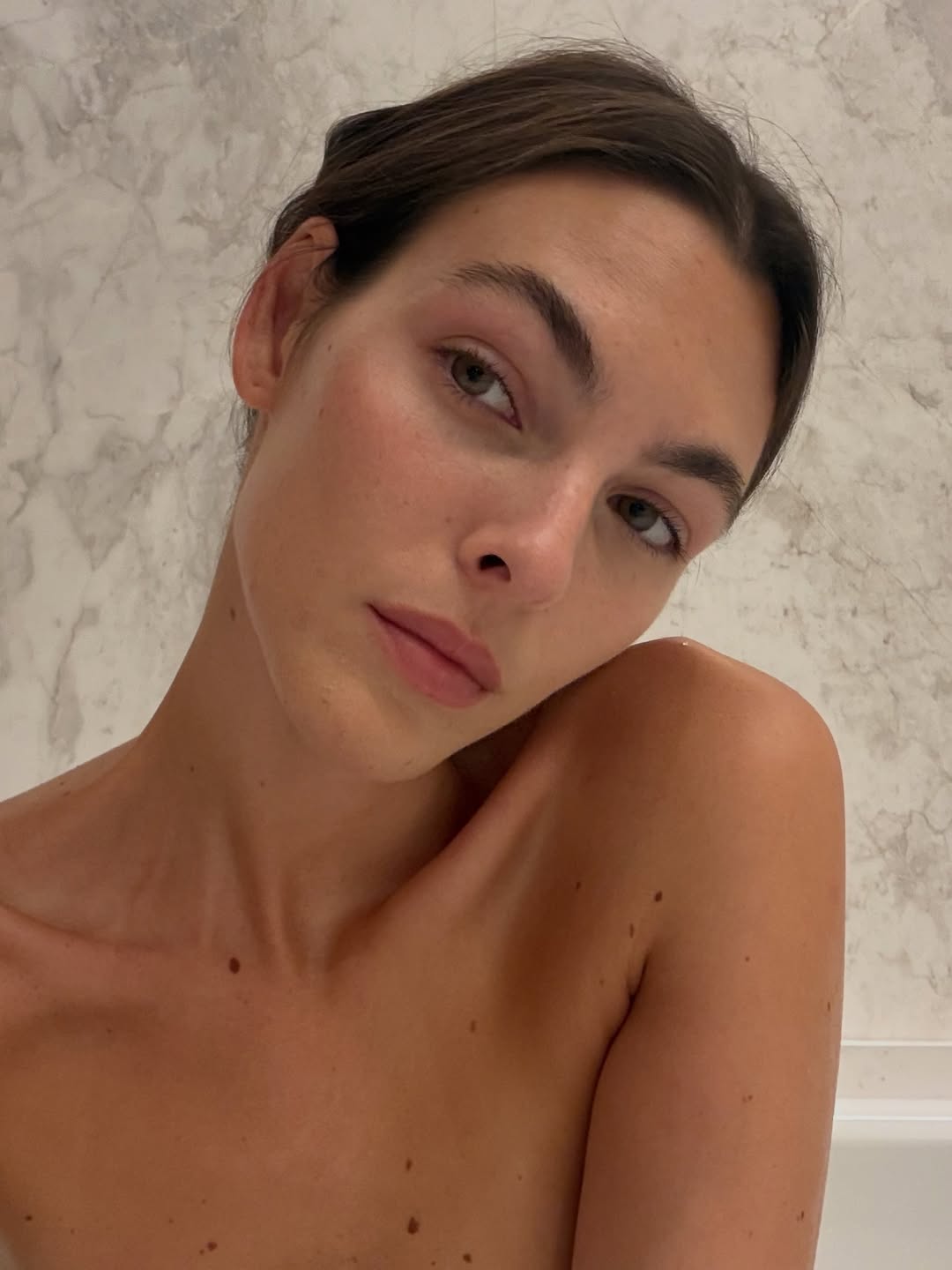 Виттория Черетти показала кадры, сделанные во время Недели моды. На одном из фото модель предстала без одежды. Манекенщица позировала с собранными волосами и без косметики в ванной.