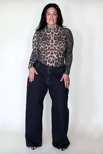 Эшли Грэм позировала в полупрозрачном топе с леопардовым принтом и черных брюках-палаццо. Волосы ей уложили мягкими локонами и сделали легкий дневной макияж.
