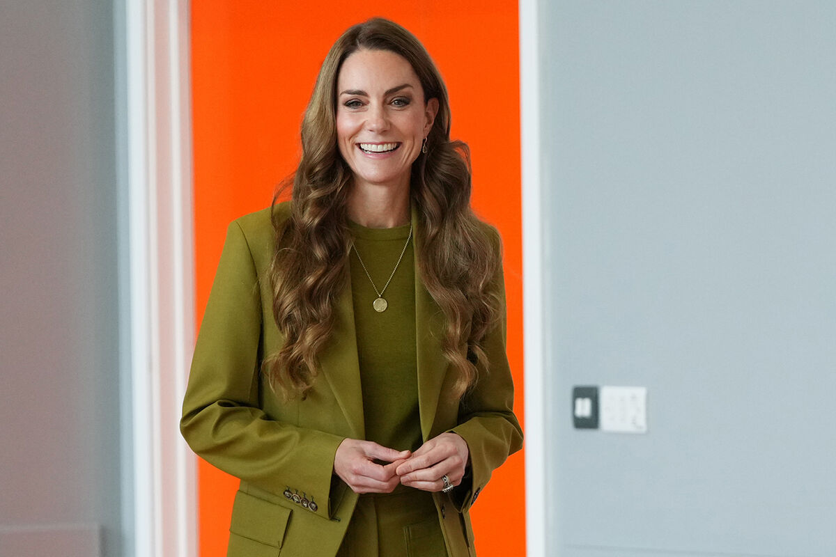 43-летняя принцесса Уэльская посетила благотворительную организацию Home-Start. Принцесса встретилась с семьями с детьми, которых поддерживает организация, и волонтерами, а также представила им серию анимационных фильмов своего Центра раннего детства. Для выхода на публику она предпочла зеленый костюм, который дополнила джемпером в тон и коричневыми лодочками на высоких каблуках. В комментариях образ Миддлтон сравнили с цветом «дубайского шоколада».