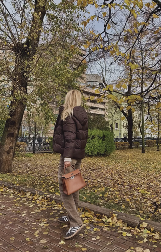 Виктория Лопырева была запечатлена в шоколадном пуховике, светлом свитере, коричневых вельветовых брюках и кроссовках. Модель дополнила свой образ кожаной сумкой Hermes Birkin коричневого цвета. Похожее изделие бежево-коричневого цвета на сайте люксовых товаров Farfetch стоит $43,848 (почти 3,5 миллиона рублей. — прим.ред.).