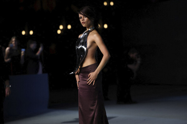 23-летняя Дженна Ортега посетила гала-вечер Музея киноакадемии, который состоялся 18 октября в Лос-Анджелесе. Актриса предстала перед камерами в металлическом топе в виде листка без бюстгальтера. Артистка также надела коричневую макси-юбку, кольца и серьги. Знаменитости уложили волосы в пучок с прядями у лица и сделали макияж с черными стрелками и коричневыми губами.