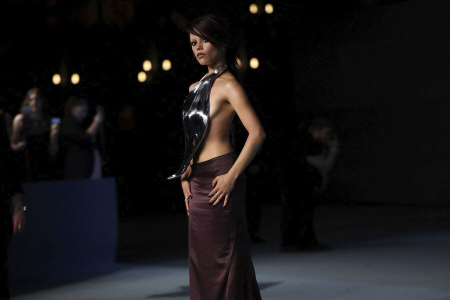 Звезда сериала «Уэнздей» и актриса Дженна Ортега прикрыла голую грудь металлическим листом. Фото опубликованы на сайте Daily Mail.