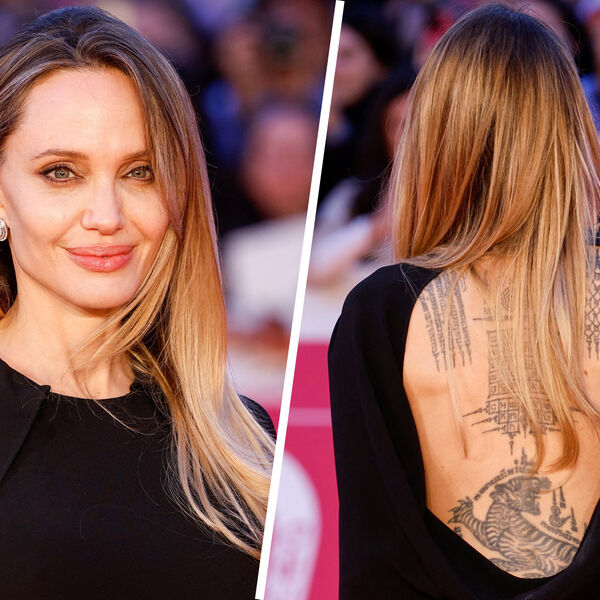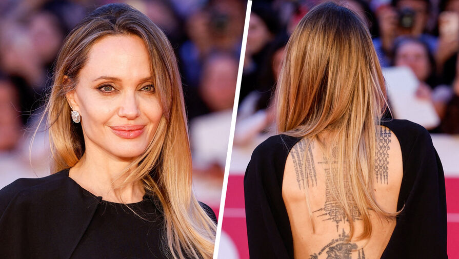 Голливудская актриса Анджелина Джоли продемонстрировала татуировки в платье с открытой спиной. Фото опубликованы на сайте People.