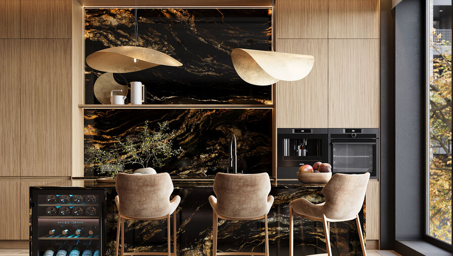 Кузнецова добавила, что натуральный камень широко используется не только для столешниц, ступеней и подоконных плит, он также интегрируется в виде стеновых панелей разного масштаба, кухонных фартуков, а еще становится частью мебельных фасадов.