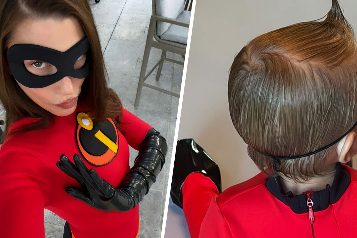 Хейли Бибер нарядилась Эластикой из «Суперсемейки», а ее сын Джек Блюз появился сразу в двух образах: сценическом наряде своего отца Джастина Бибера, а такжев костюме Джек-Джека из мультфильма.
