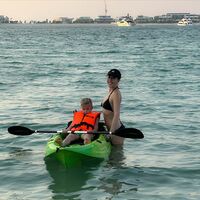 «Море на детские каникулы — это лучший подарок, я считаю. А в тихой Bvlgari-бухте впервые опробовали каякинг вместо джетски. Мама очень довольна, потому как каякинг не дребезжит, не боишься, что он куда-то врежется, ну и вообще руки красивые накачать веслом на отдыхе — дело хорошее», — написала звезда под фото.
