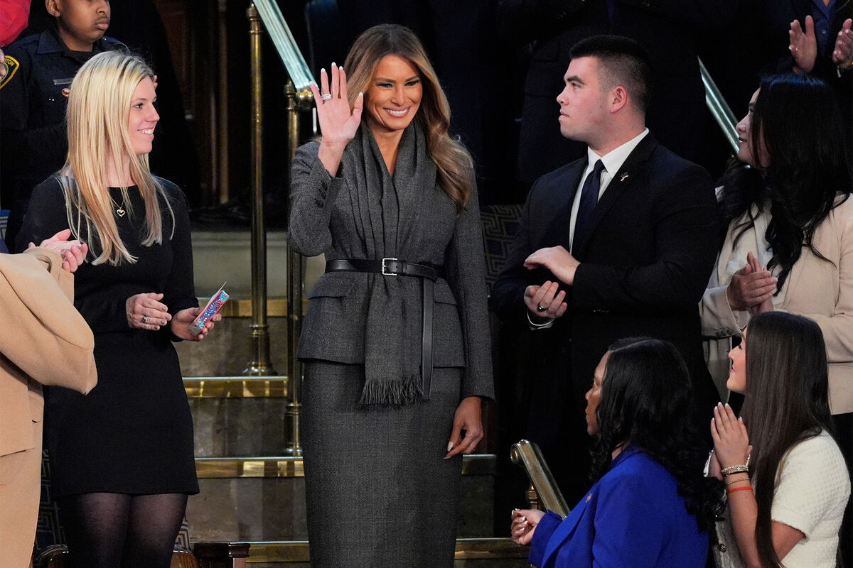 В ноябре Мелания Трамп встретила рождественскую елку для Белого дома. Жена президента США вышла на публику под исполнение военного оркестра. Бизнесвумен была одета в белое пальто Dior, бордовые кожаные перчатки и клетчатые туфли на каблуках Manolo Blahnik. Первой леди США уложили распущенные волосы и сделали макияж в нюдовых тонах.