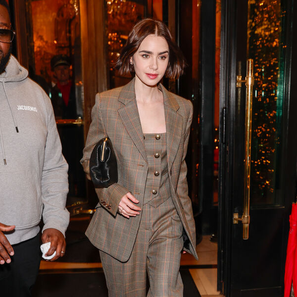 Лили Коллинз подловили папарацци в Париже 14 декабря. Актриса появилась на публике в коричневом полосатом костюме, который состоял из жакета, топа с золотыми пуговицами и широких брюк. Артистка дополнила образ кольцом, серьгами и черным кожаным клатчем. Знаменитость уложила распущенные волосы и сделала макияж с коричневыми тенями и розовой помадой.