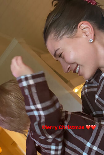 Жена рэпера Джастина Бибера, модель Хейли Бибер, снялась с сыном на руках в Рождество. Снимками она поделилась в Instagram (владелец компания Meta признана в России экстремистской и запрещена).