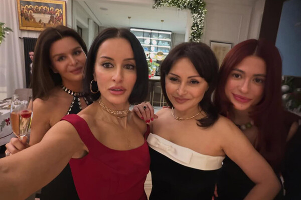 Тина Канделаки с дочерью Меланией и подругой Линдой в вечерних платьях снялись в домашнем интерьере во время празднования Нового года.