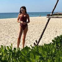 42-летняя Ксения Бородина предстала перед камерой в красном слитном купальнике с леопардовым принтом и солнцезащитных очках. Телеведущая позировала с распущенными волосами и без макияжа. Блогерша была запечатлена рядом с пальмой на пляже в Таиланде.