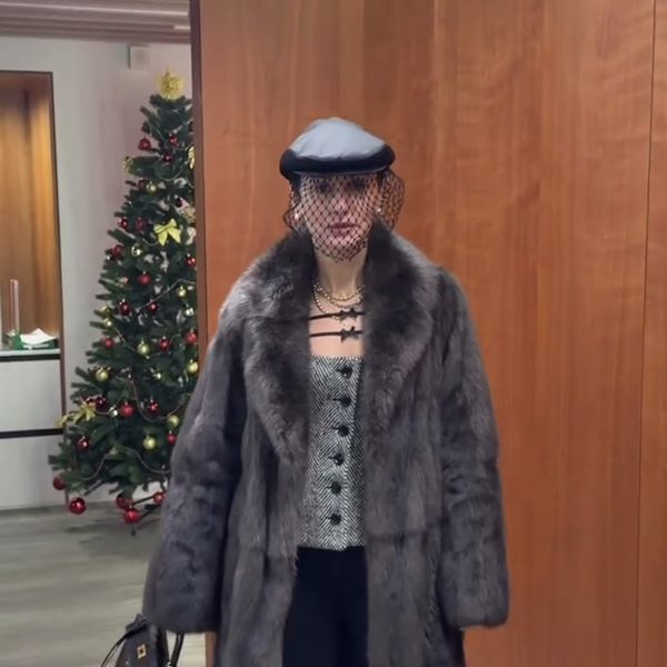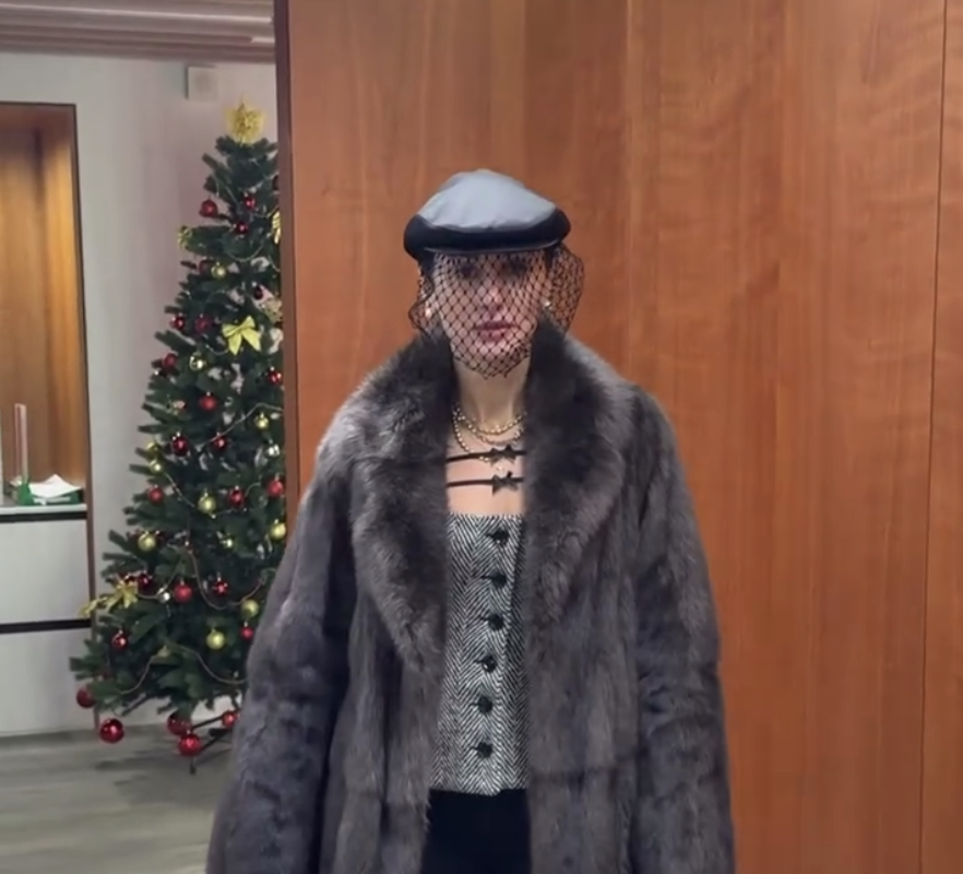 50-летняя Тина Канделаки позировала в твидовом корсетном топе, который сочетала с черными брюками, длинной шубой и ботильонами на каблуках. Телеведущая добавила к образу головной убор с вуалью, кожаную сумку Hermes, серьги и ожерелье. Продюсер предстала перед камерой с макияжем в естественных тонах.