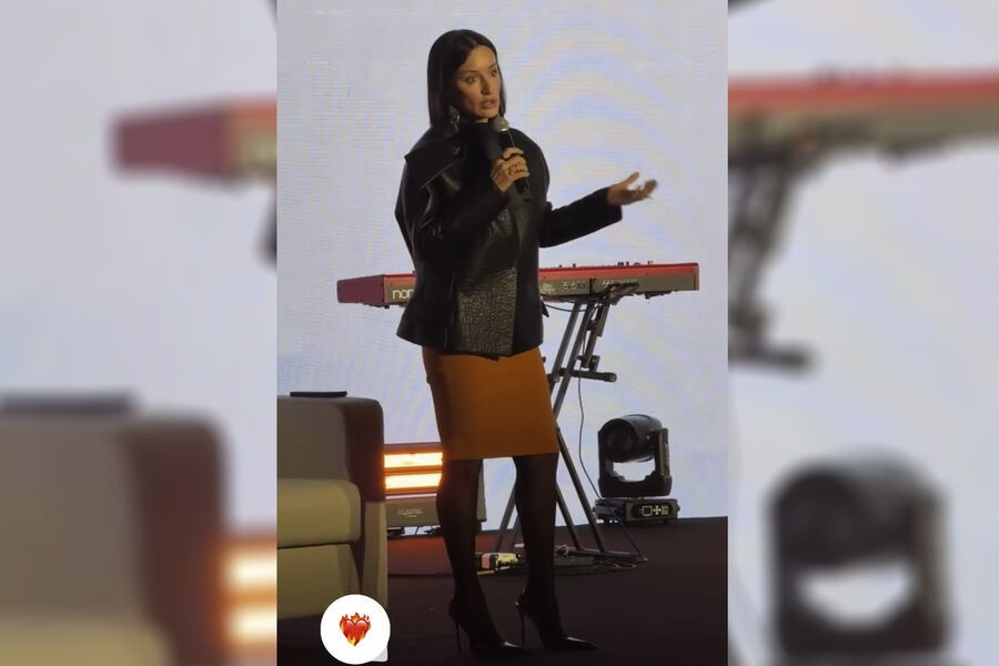 50-летняя Тина Канделаки появилась на публике в оранжевой юбке-карандаш, черном жакете из кожи и туфлях на высоких каблуках. Волосы ей выпрямили и сделали вечерний макияж.